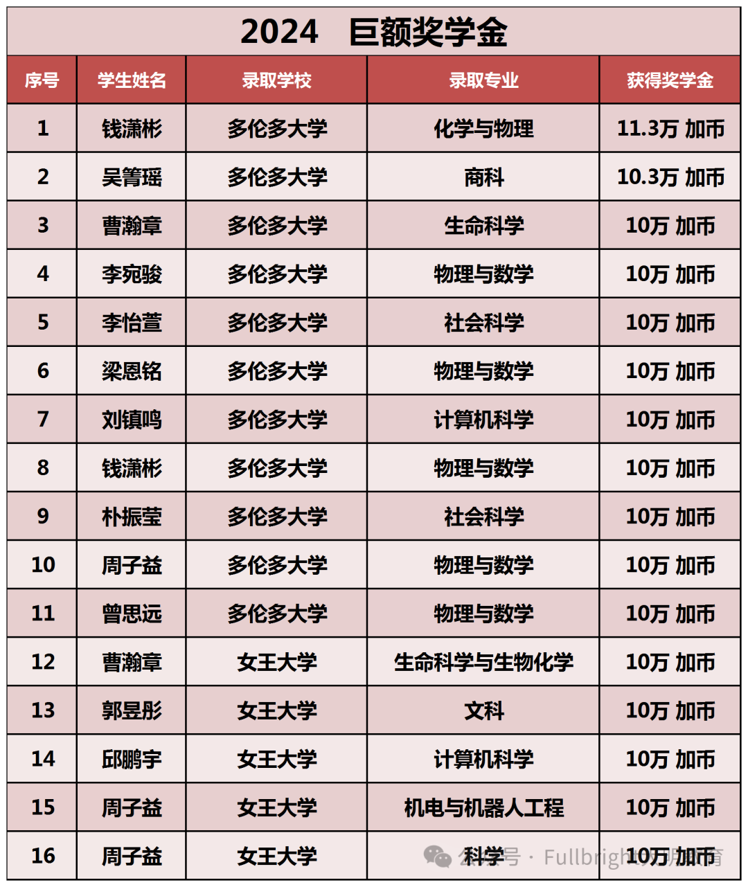 获得16个,10万加币奖学金