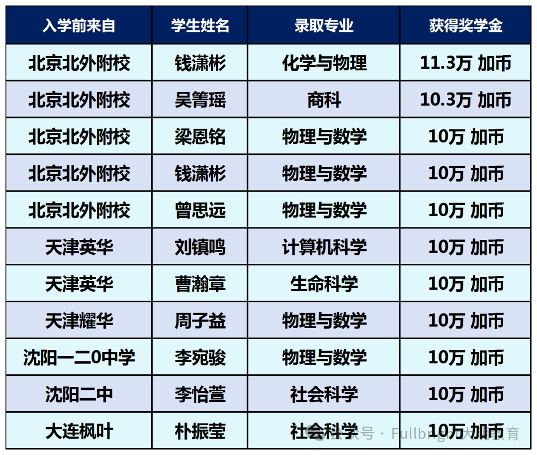 11个 10万加币奖学金