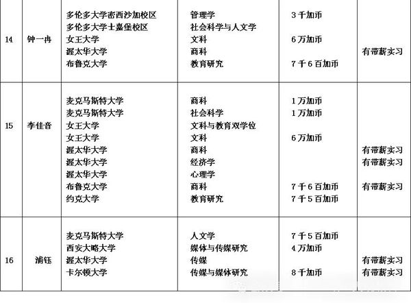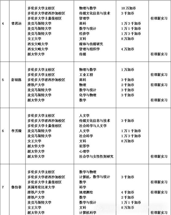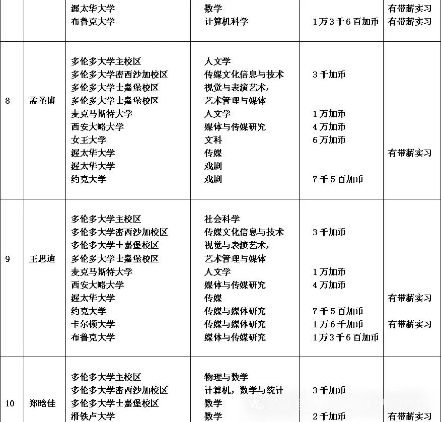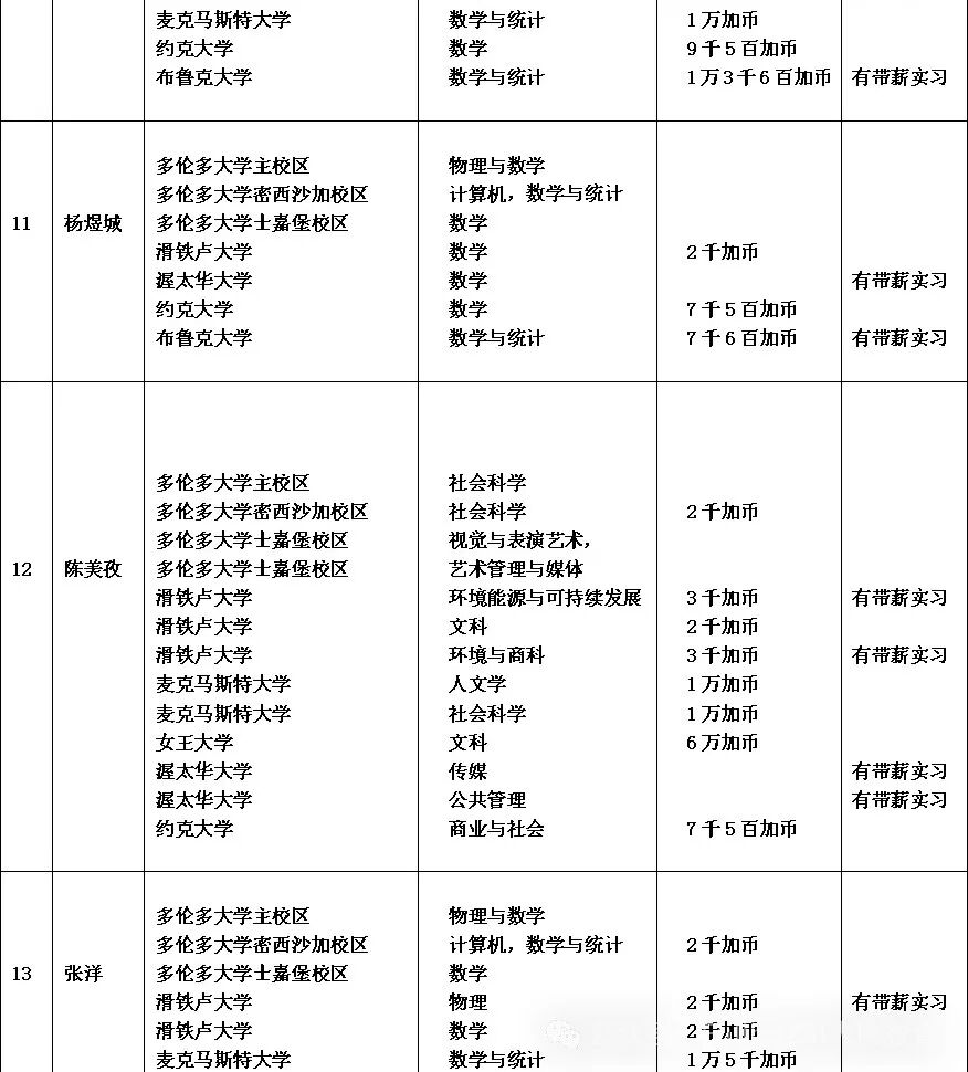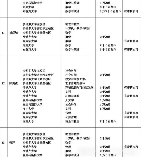 11个 10万加币奖学金