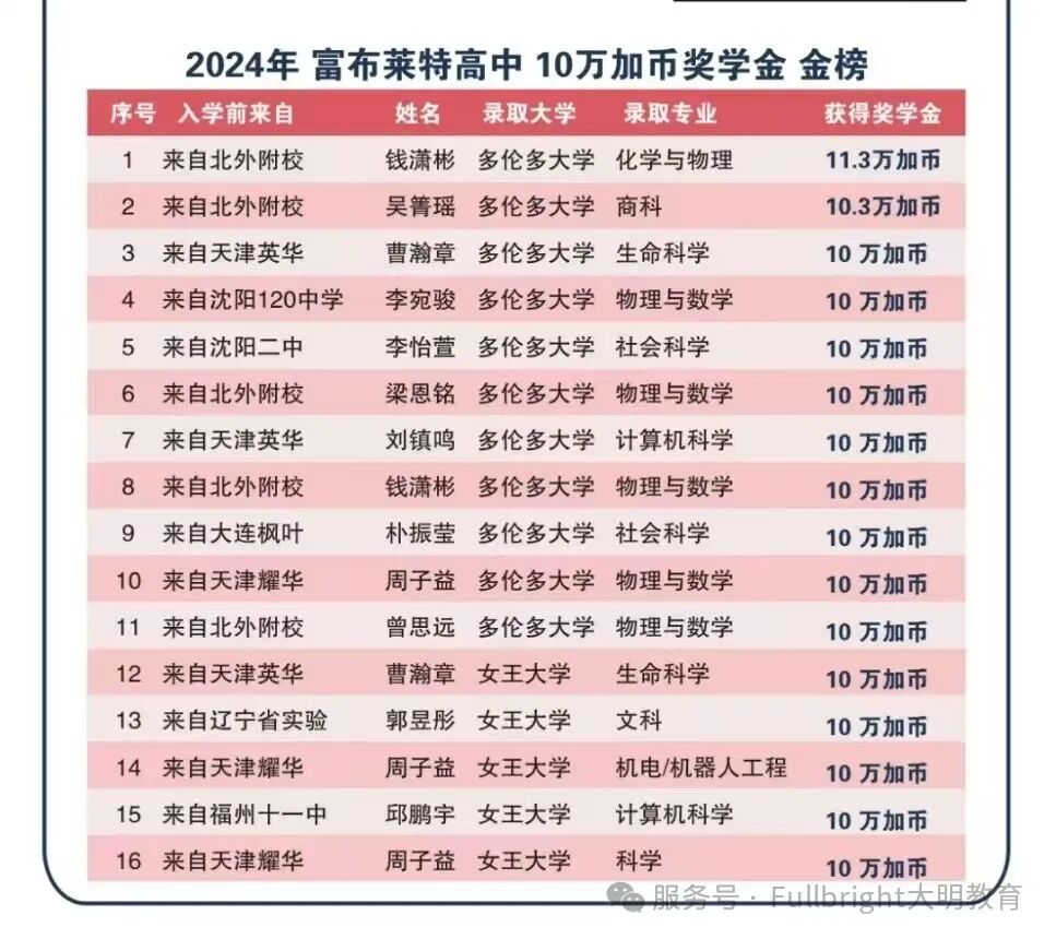 富布莱特高中2024届在读生