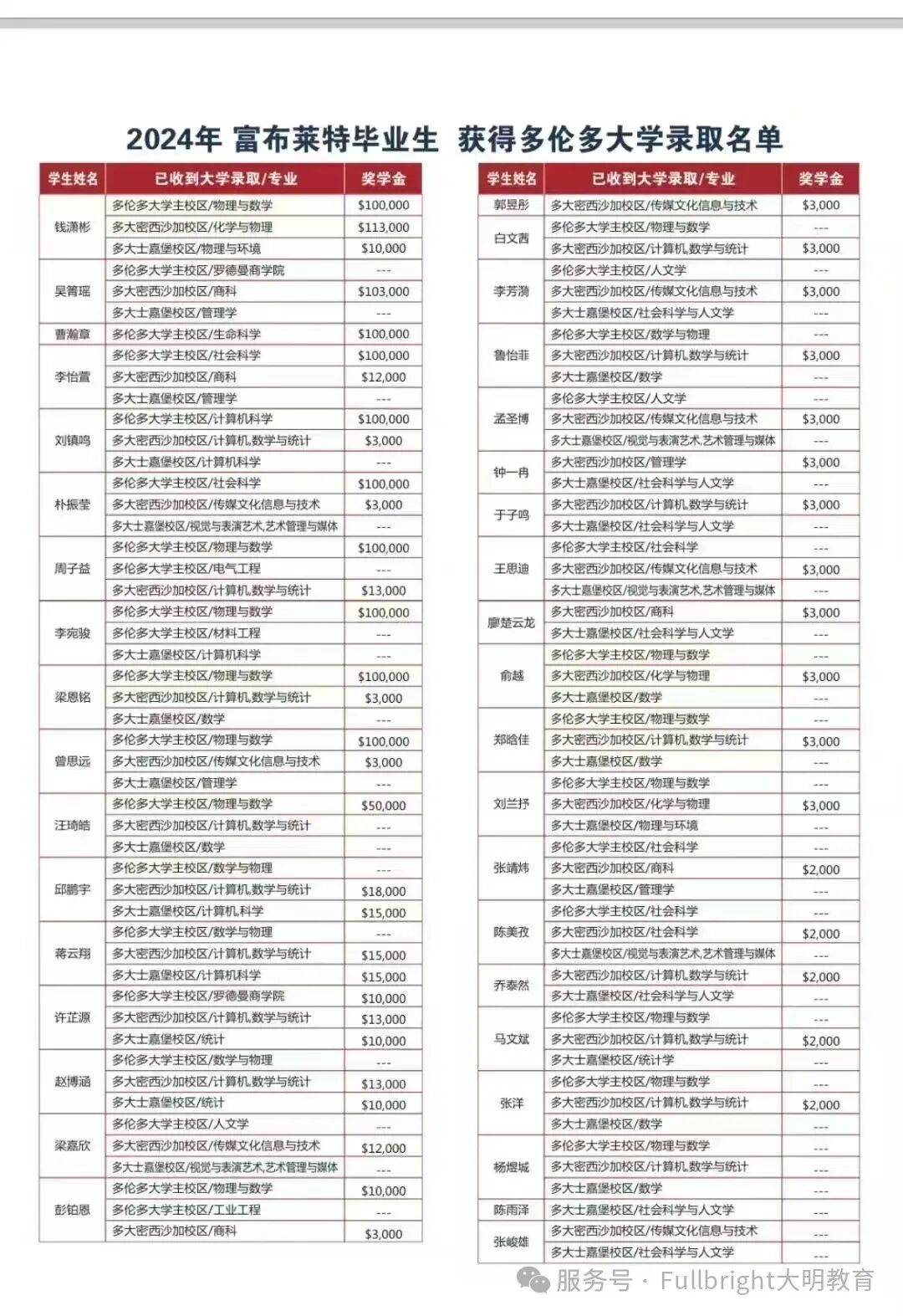 11份多伦多大学10万加币奖学金