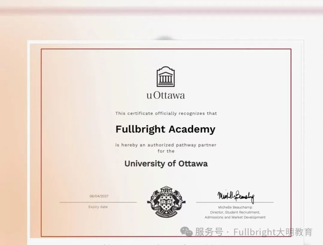 渥太华大学经过对富布莱特高中往届学生在渥太华的成绩、学术表现、GPA等综合数据评价,以及富布莱特毕业生就业发展等多项严格评审,确定授权