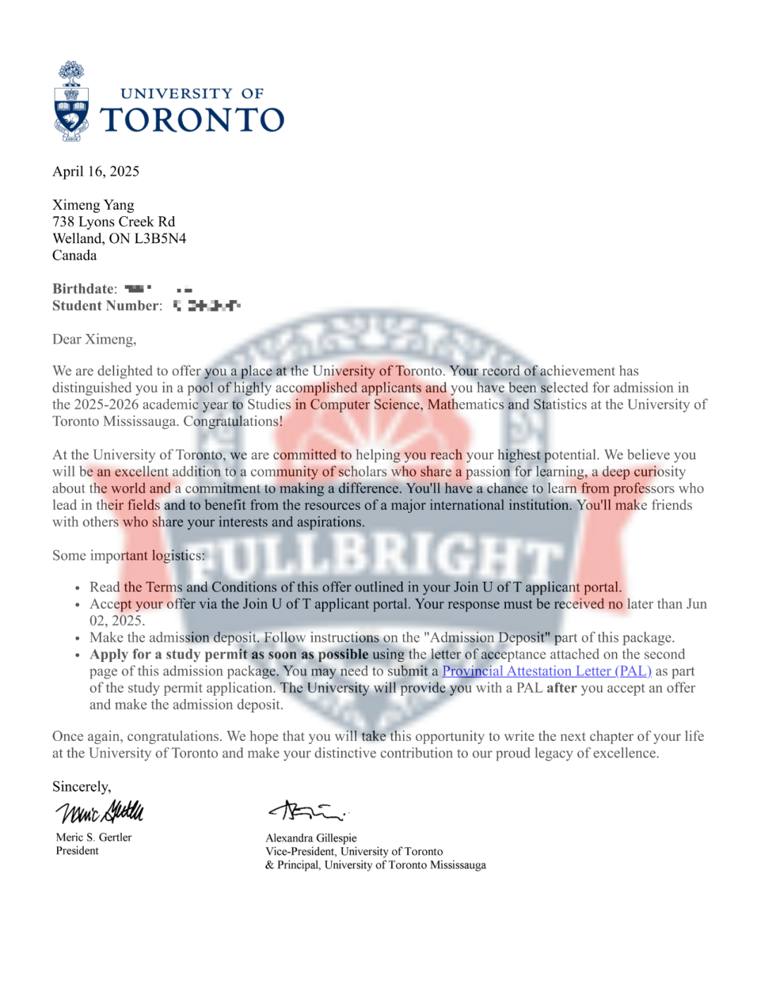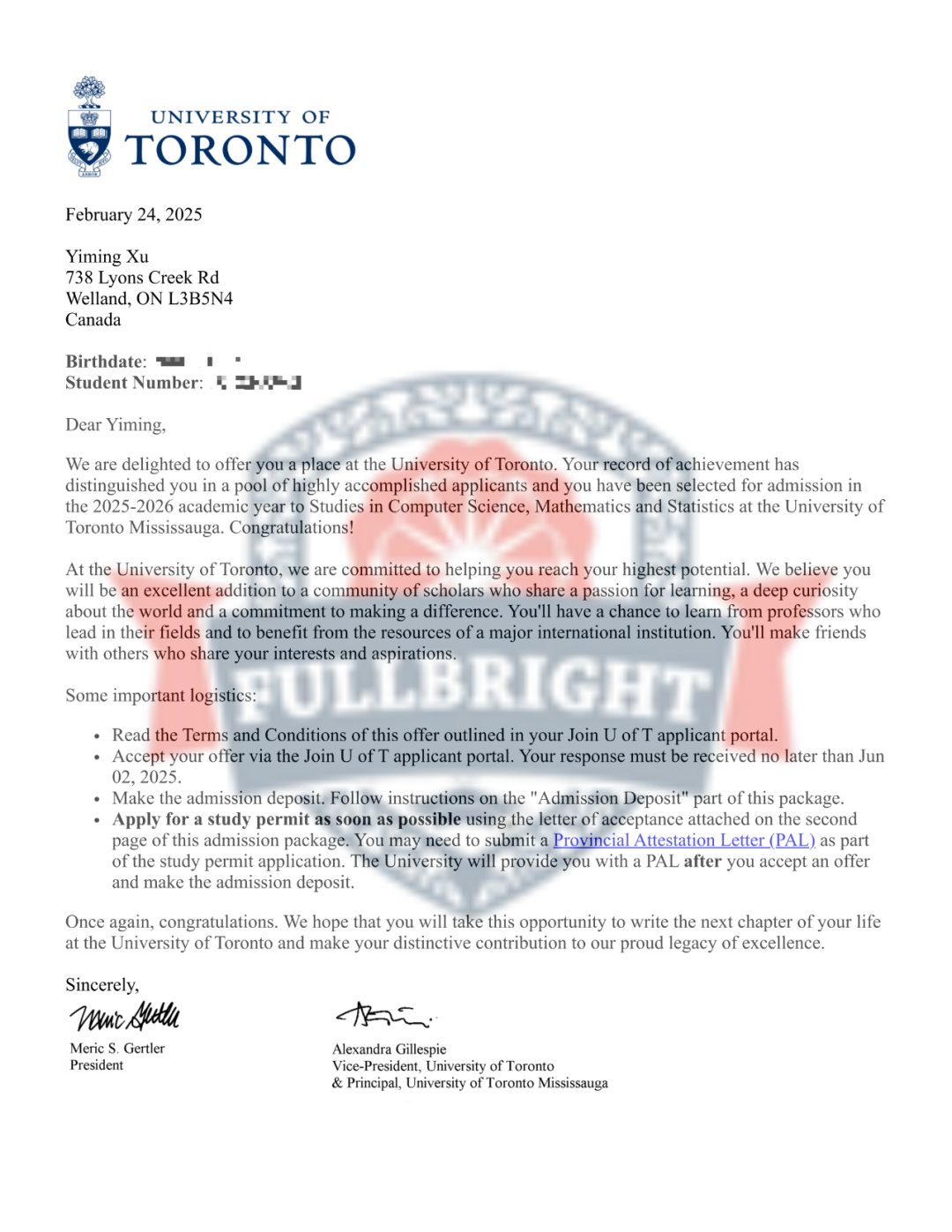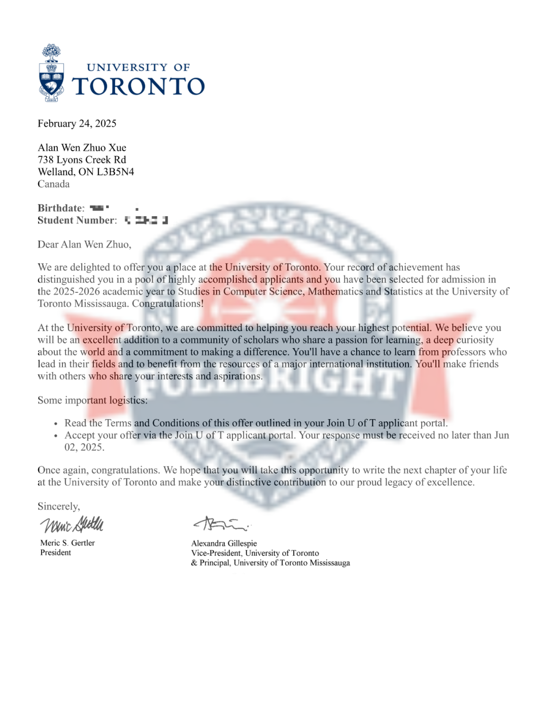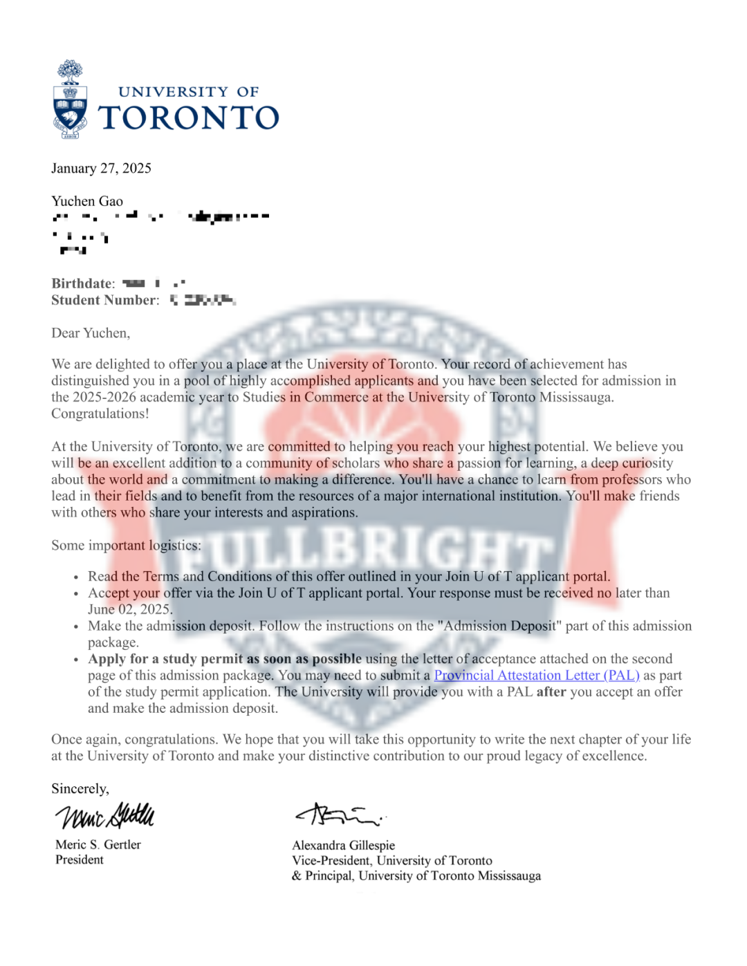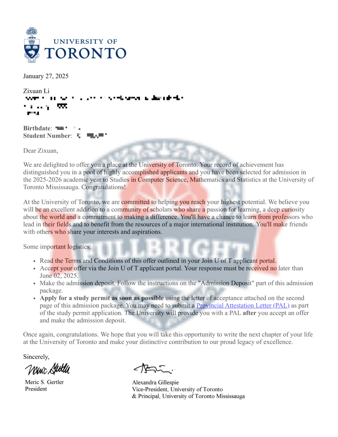 2025年 获得录取的大学名单
