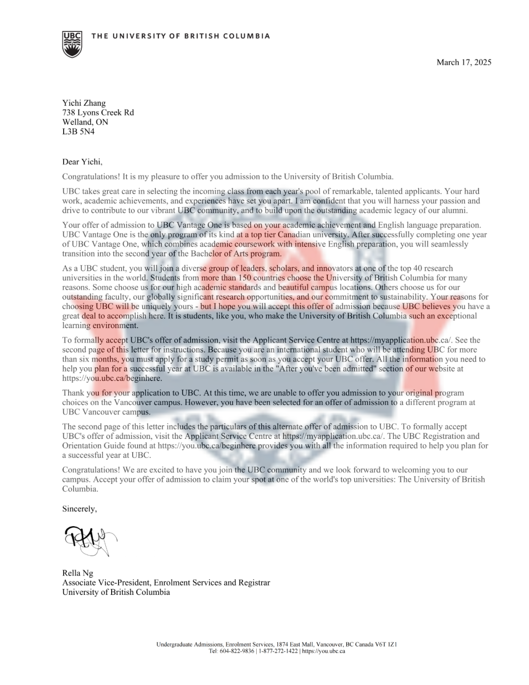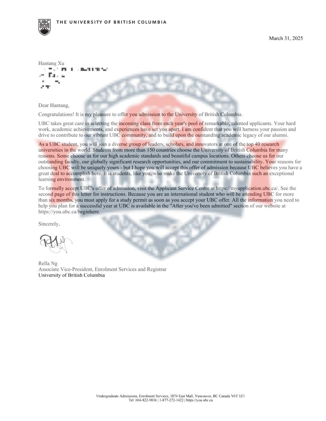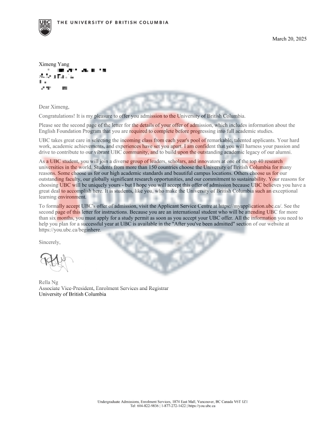 英属哥伦比亚大学(UBC) 6 份