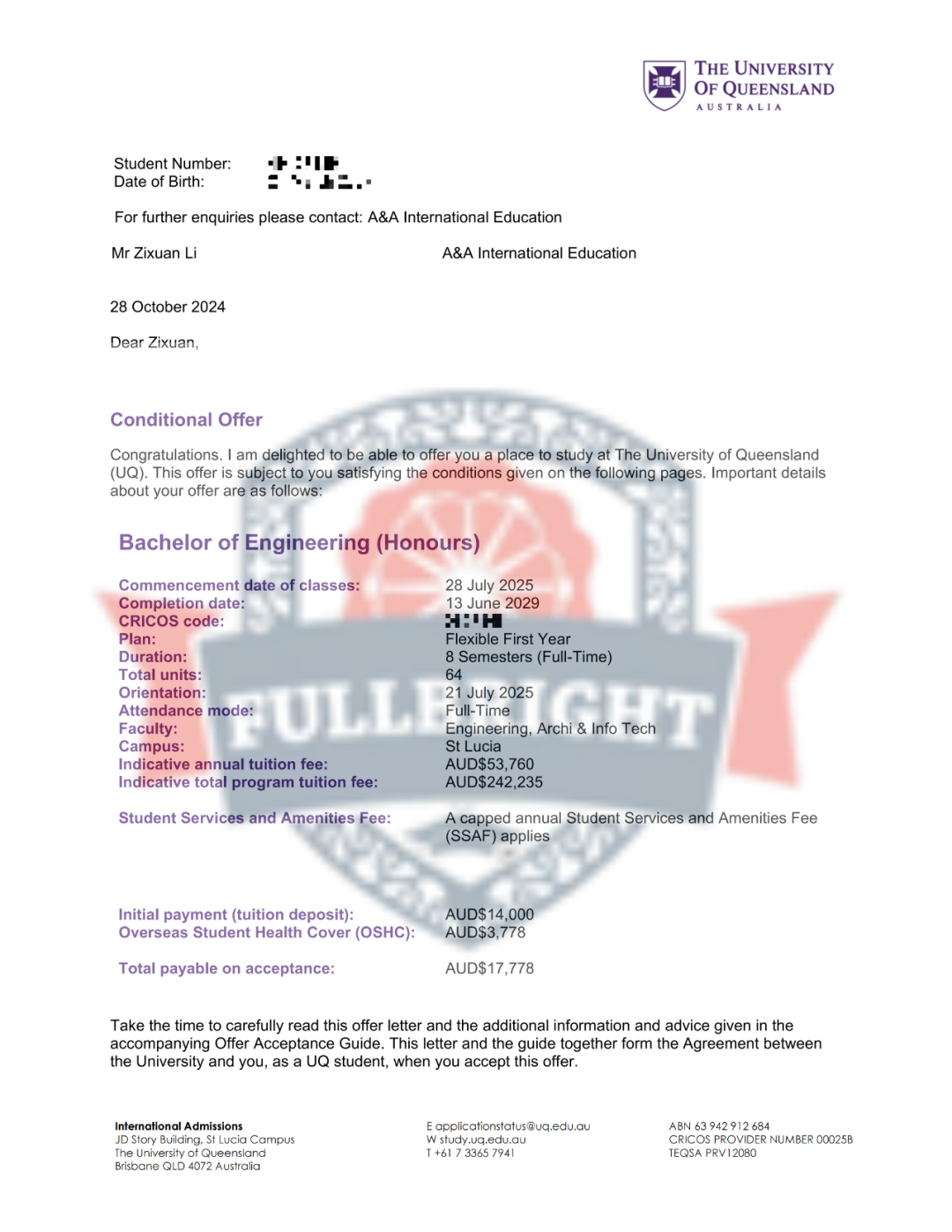 澳洲昆士兰大学 5 份